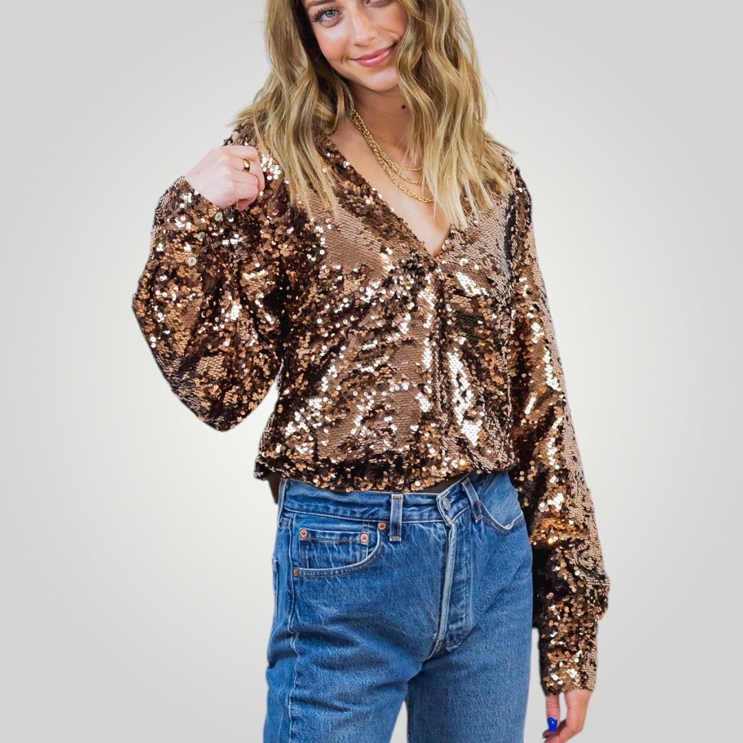 Copper Sequin Bodysuit