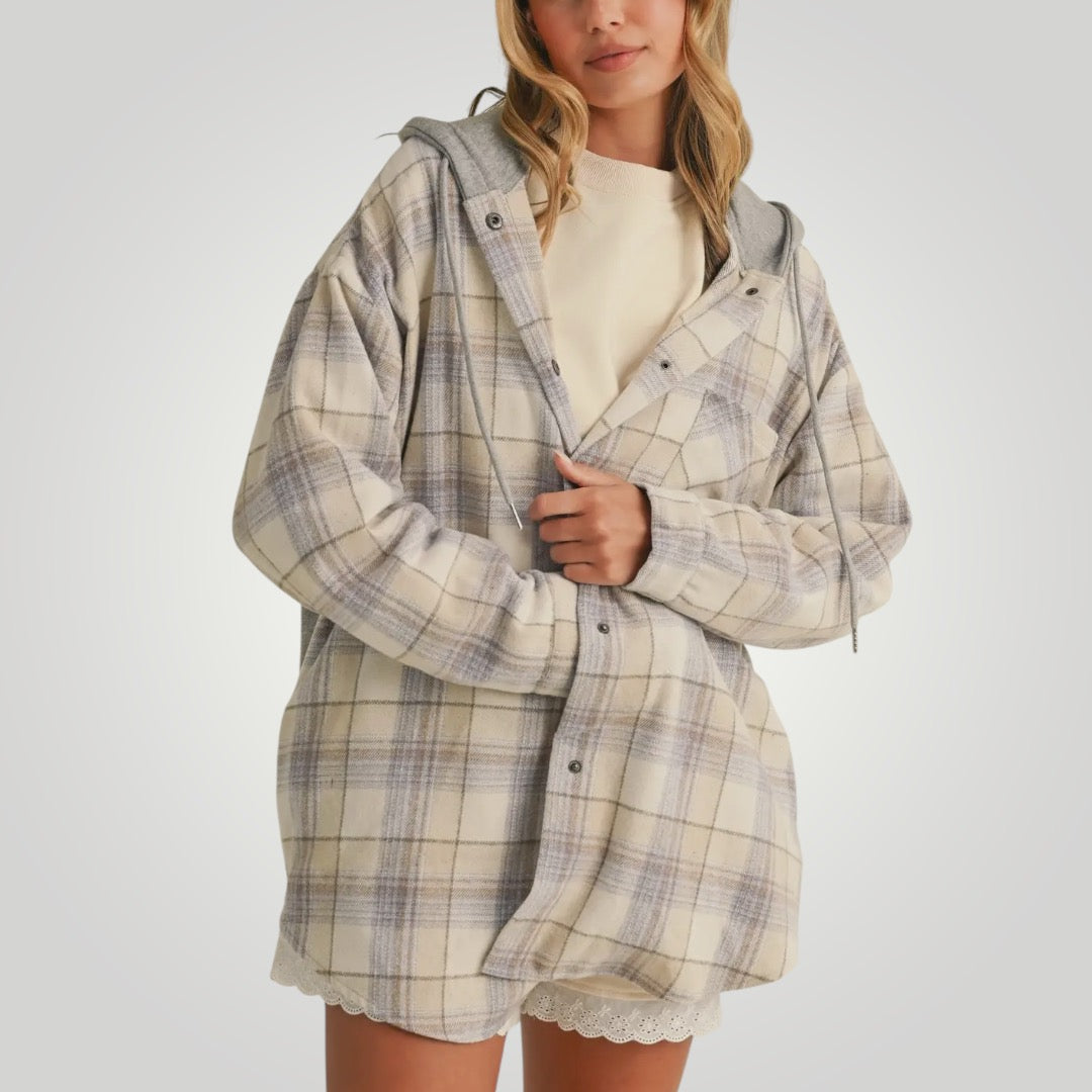 Our Frankie Hooded Shacket is the perfect combination of casual and stylish! This versatile shacket features a button down closure and a practical hood for added warmth.